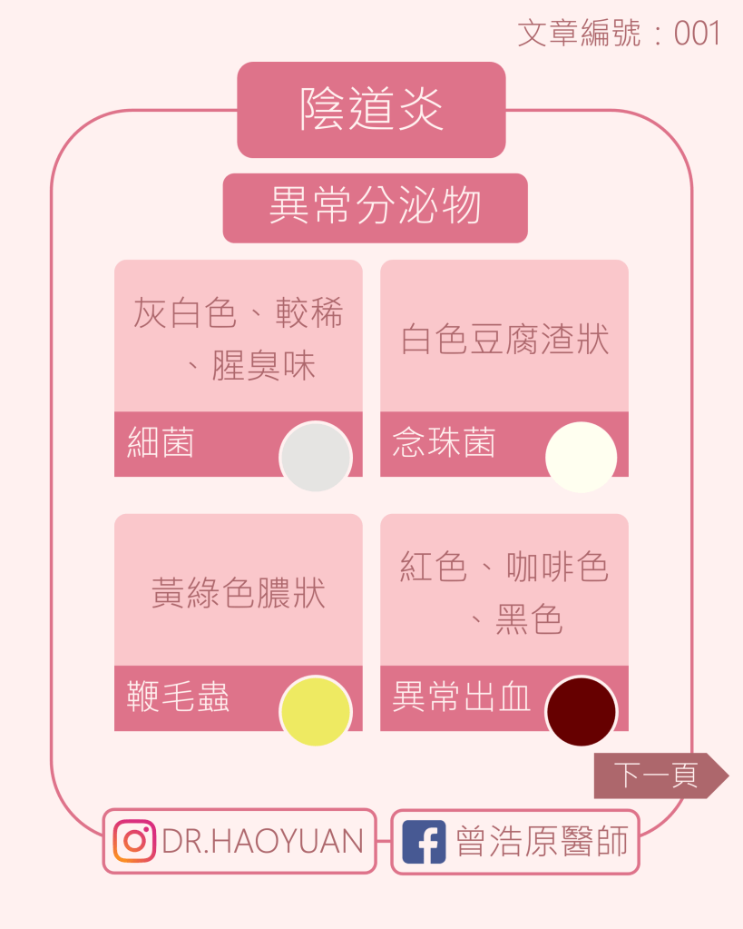 - 灰白色分泌物、較稀、有腥臭味 → 比較像是細菌感染