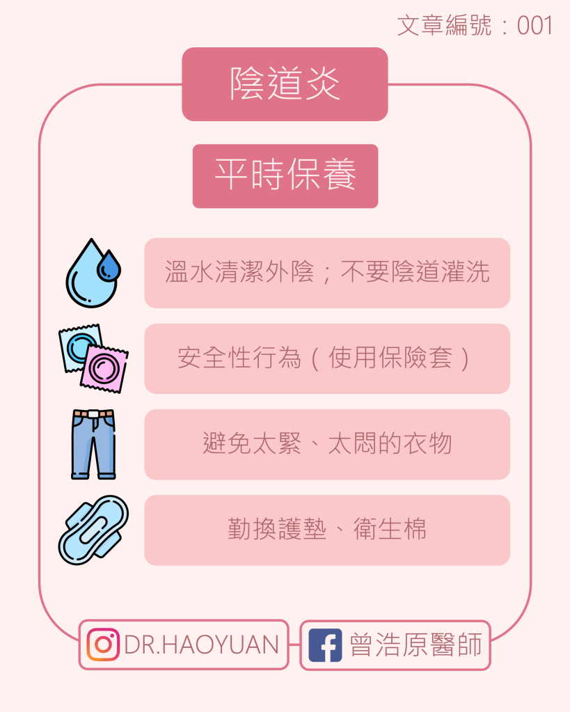 陰道發炎是個相當惱人的疾病,對女性的生活品質有重大的影響。曾浩原醫師提醒女生們不要因為害怕看婦產科而不敢就醫,或者想說放著讓他自己好。放任不管的話甚至可能演變成更嚴重的感染。因此建議女生如果有異常分泌物、會陰搔癢或疼痛等問題,都應該尋求專業婦產科醫師的診斷及治療。